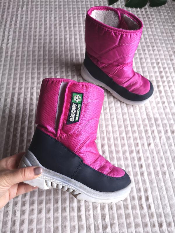 Сноубутсы на девочку. На липучке. Без мембраны. Брали на смену основным, на те случаи, когда основные намокали. Заявленный 30 размер. За стелькой 19 см.