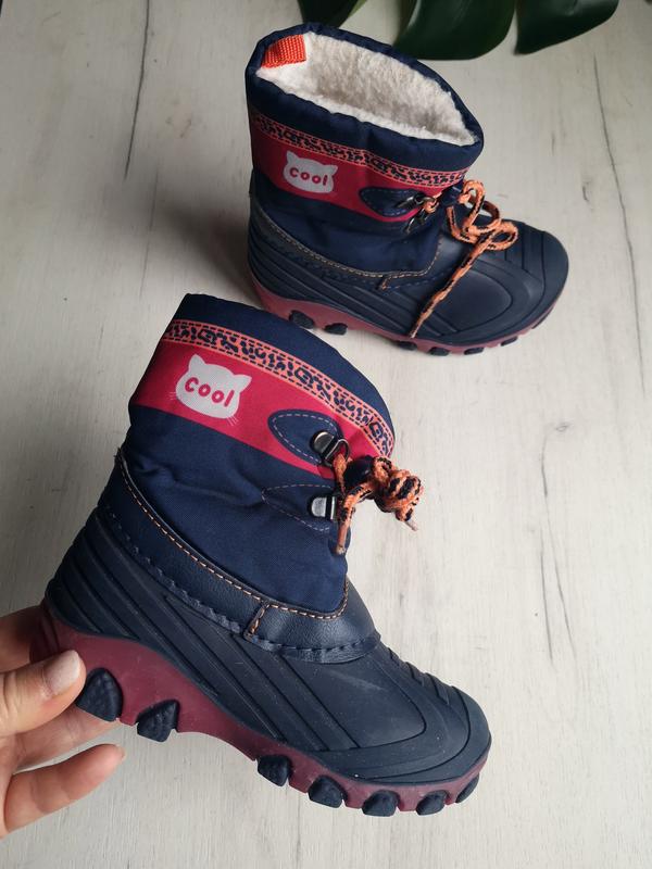 Дитячі сноубутси на гумовій основі. Підійдуть як хлопчику, так і дівчинці. Заявлений розмір 25, за устілкою 15,5 см. В подошві, під п'ятами при ходьбі блимають світлові елементи, але тільки на одному чобітку.