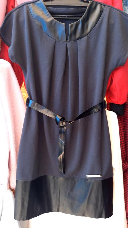 Сарафан трикотажний, прикрашений м'ягенькою екошкірою. На залишку два розміри, тому ціна знижена💥💥💥💣