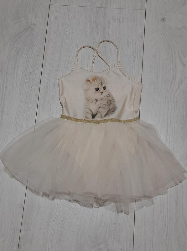Плаття-боді (сарафан) з котиком, низ-фатіновий, верх- на брительках, верх-тягнеться. Бірка обрізана, бо заважала. Заміри: в знаменнику у розтягнутому стані. ПОГ 29/33см ПОТ 26/29см Довжина без брительок по спині 37см Висота трусиків від пояса 22см