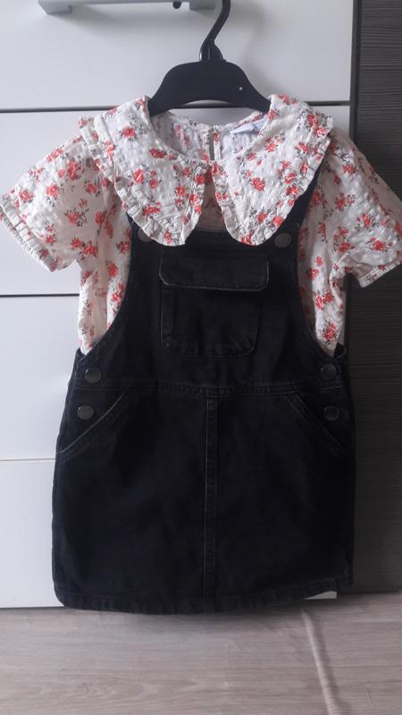 Блуза з трендовим комірчиком і джинсовий сарафан в графітовому кольорі Стан нових речей.