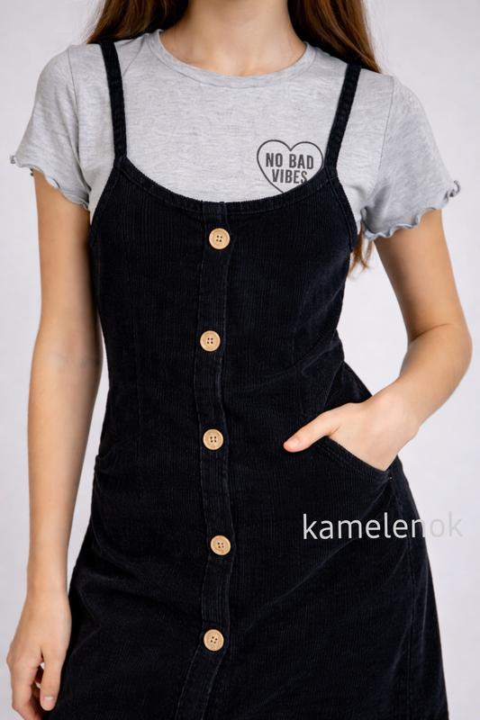 Крутезный комплект от Primark Серая футболка +черный сарафан 🌿качество просто шикарное 🌿футболка из плотной ткани 🌿сарафан : мягкий вельвет 🌿пуговицы на сарафане обманки, сарафан одевается через голову Размер: 11-12 лет (рост 152 см) 12-13 лет (рост 158 см) 11-12 лет (рост 152 см) 📐 Длина футболки 45 см. 📐 длина сарафана без бретелек 74 см, длина бретелей 10 см 12-13 лет (рост 158 см) 📐 Длина футболки 50 см. 📐 длина сарафана без бретелек 77 см, длина бретелей 14 см