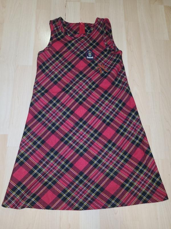Сарафан теплый, красного цвета в черно-желтую клетку. Замеры на фото