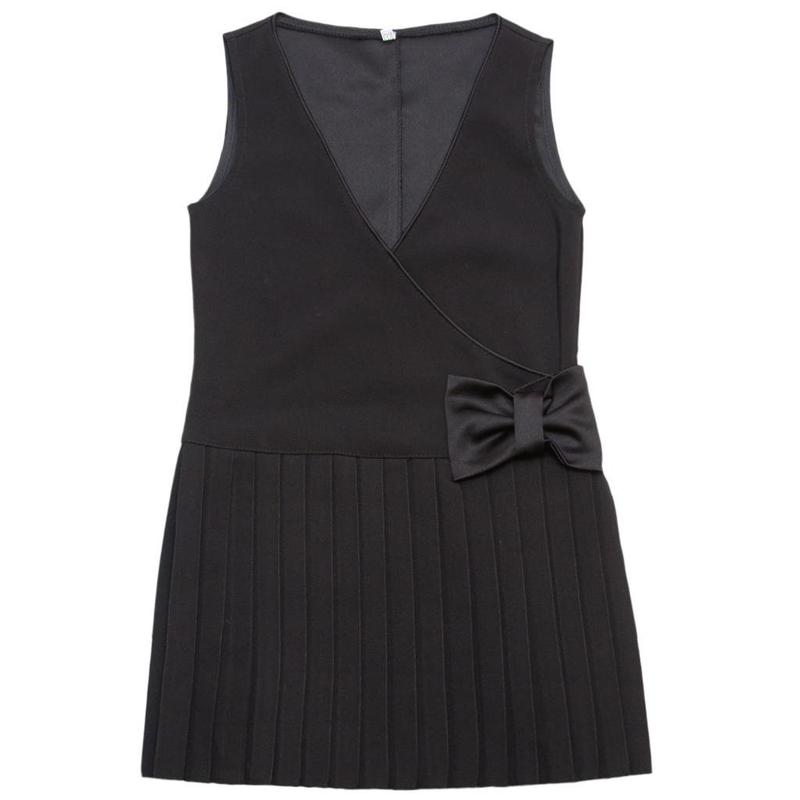 Представляем Вашему вниманию школьный классический сарафан, черного цвета. Изделие выполнено из очень качественного полотна не мнется и не портится после стирки, при этом данная модель очень удобна. Сарафан выглядит строго и мыло одновременно, украшено на поясе крупный бант, юбка гофрированная и пышная, что придает очень милый и стильный вид сарафану.