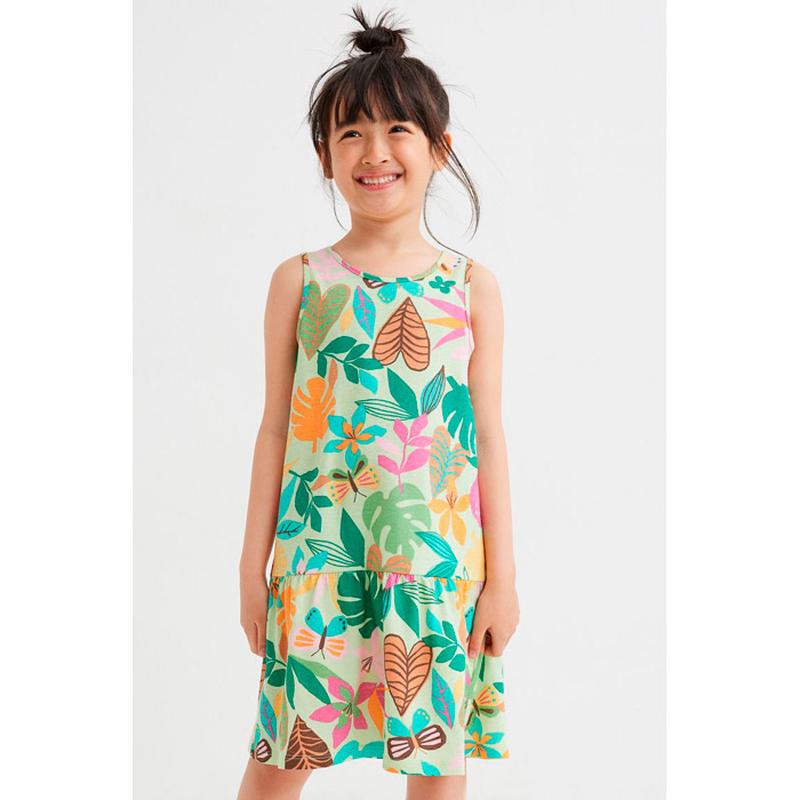 Детское платье на девочку. Платье без рукавов из мягкого хлопкового трикотажа с принтом. Отрезное по сборке на талии и расклешенной юбкой. H&M 4-6 лет - р.110/116: длина 62, ПОГ 29