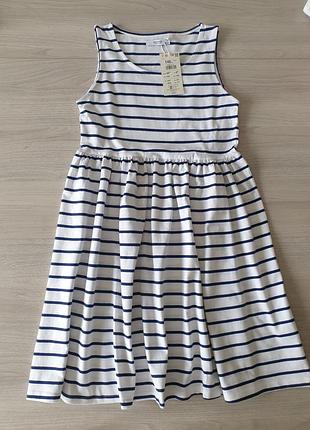 Сукня нова, з біркою, в ідеальному стані, без недоліків. Склад: 100% бавовна. Розмір 146. Тканина приємна до тіла. Заміри дивіться на останньому фото. Перешлю Новою поштою, Укрпоштою або Meest express. Безпечною оплатою через Шафу не висилаю. Самовивозу немає. Дякую за увагу!