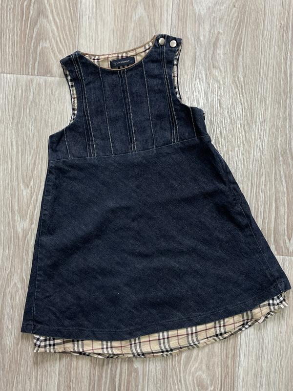 джинсовый Сарафан Burberry. клетка коттон. бирки нет. приблизительно размер 4-5 лет. длина 57. ПОГ 30.