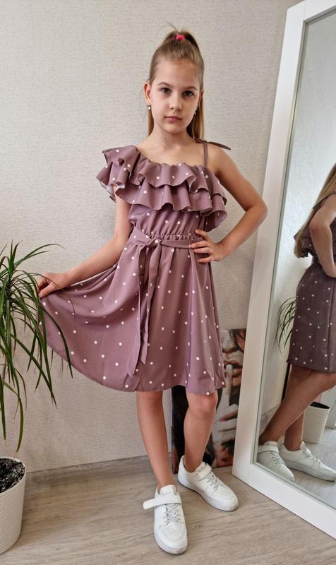 Легкий литний сарафанчик на одно плечо Ткань софт премиум класса поясок в комплекті Рекомендую 134(2 шт)-длина 68, пог 33 140(2 шт)-длина 75, пог 34 146(1 шт)-длина 81,пог 36 152(2 шт)-длина 84,пог 37 158(2 шт)-длина 90, пог 38