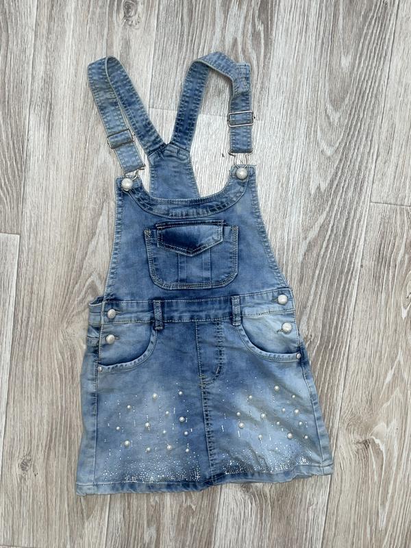 Сарафан из мягкого джинса с украшением Сзади 2 кармана Шлейки регулируются В талии утяжка Состояние отличное без дефектов 10 лет Длина 65. Юбка 29. ПОТ 31