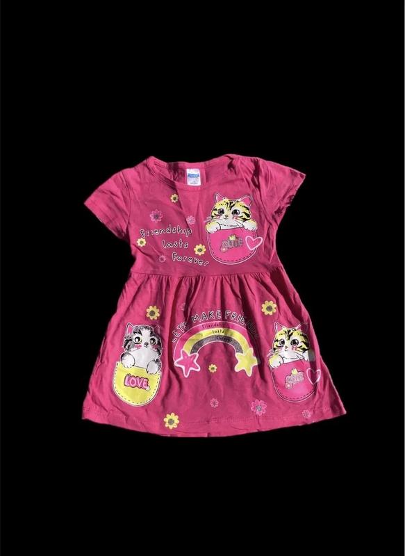 Чудова дитяча сукня з кошенятами Виробник: Туреччина Состав: бавовна Розміри: 104,116,122,128 ЗАМІРИ: Розмір: 104. Ширина плечей: 26 см. НО грудей: 29 см. Довжина виробу: 50 см. Розмір: 116. Ширина плечей: 30 см. НО грудей: 30 см. Довжина виробу: 54 см. Розмір: 122. Ширина плечей: 31 см. НО грудей: 33 см. Довжина виробу: 57 см. Розмір: 128. Ширина плечей: 31 см. НО грудей: 33 см. Довжина виробу: 59 см.