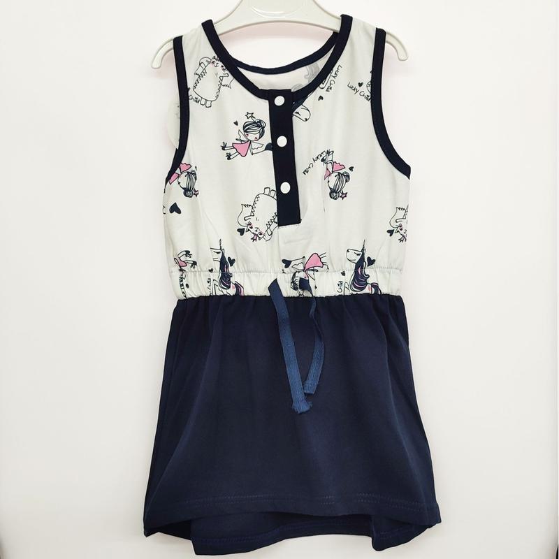 Сарафан детский для девочки, верх маечка, застегивается на кнопочки спереди, пояс резинка, низ юбочка свободного кроя, подойдет для деток от года до 6-7 лет. Пошит из тоненькой хб ткани кулир пенеет, он считается тончайшим трикотажным полотном из хлопка, одежда из нее получается легкий и воздушный, что позволяет телу дышать и проветриваться, единственный ее недостаток, который как раз связан с ее натуральностью, - это то, что после стирки может дать усадку небольшую Сезон: лето Полотно: кулир пенье Рост 98, 104, 110, 116,122 - 230 грн