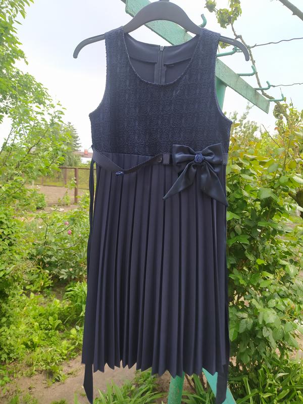 Темно- синий школьный сарафан,на первый звонок и на каждый день в школу. Состояние хорошее,ает пару зацепок, которые легко убрать и отпала розочка с пояса ( на фото видно).