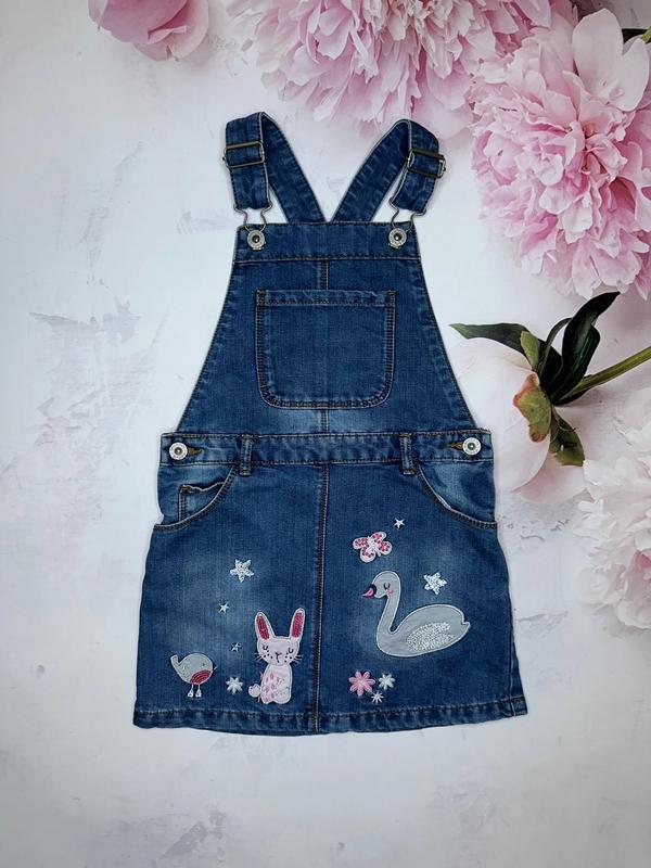 Джинсовый сарафан с вышивкой. Карманы спереди и сзади. Сзади закрывает спинку Состояние идеальное без дефектов 🏷Bluezoo 5-6 лет Длина 59(30). ПОТ 29