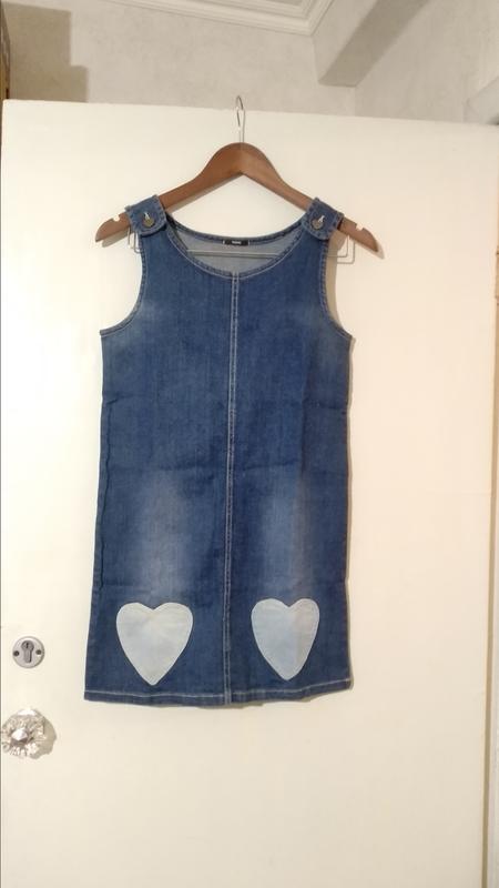 Джинсовий сарафан для дівчинки на років 12 в гарному стані ,б/у обхват грудей 82 см довжина виробу 73 см петлі регулюються кармани сердечка