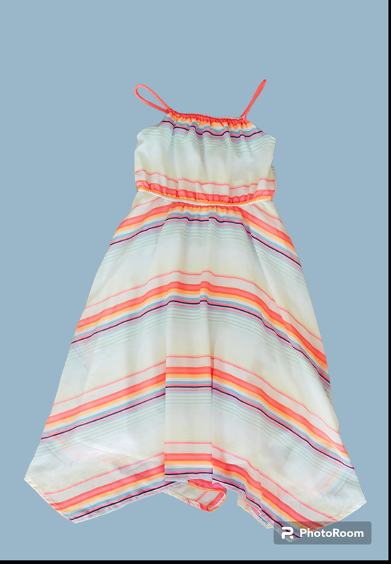 Очень яркий сарафан на девочку 6-8 лет. Состав 100% полиэстер. Рост модели 120 см. Стан, что был в использовании, хорош. Дополнительные замеры дам при необходимости