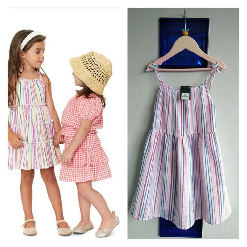 Стильный сарафан в полоску от Primark, новый с биркой. Универсальная модель для лета и солнышка, приятная ткань жатка: 65% хлопок, 35% полиэстер. По бирке на 5-6 лет, рост 116 см. Длина с бретелькой 61,5 см Длина до пояса 25 см ПОГ(резиночка тянется) 27 см Пояс 32 см