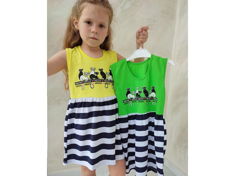 Платье детское для девочки, верх платья пошит в виде маечки, обшит бейкой из основного полотна, низ свободного кроя, не сковывающего движения, декорирована принтом, подойдет для детей от года до 4-5 лет. Пошита из тоненькой хб ткани кулир 86/92 98/104 110/116 116/122