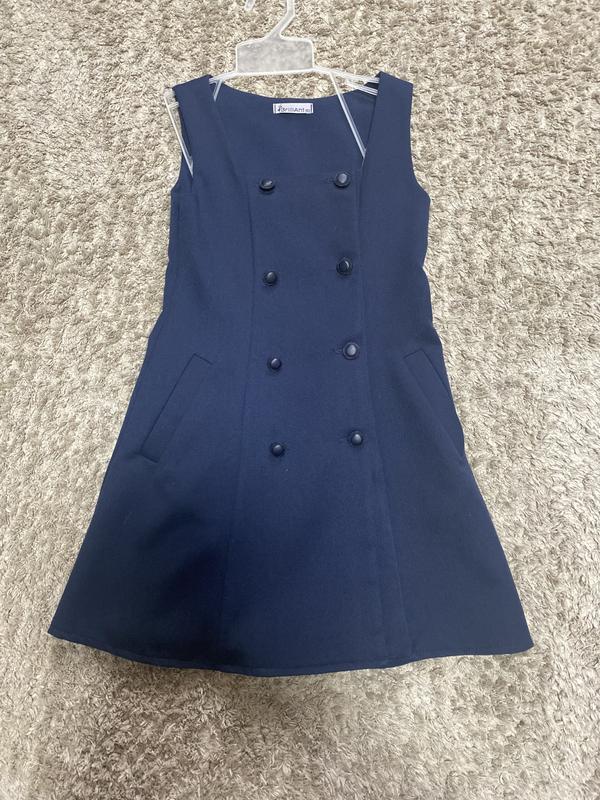 Очень качественный и красивый сарафан для маленькой школьницы, одевала несколько раз.В идеальном состоянии Подойдет на размер 116-122 Длина-63,5 Ширина-29