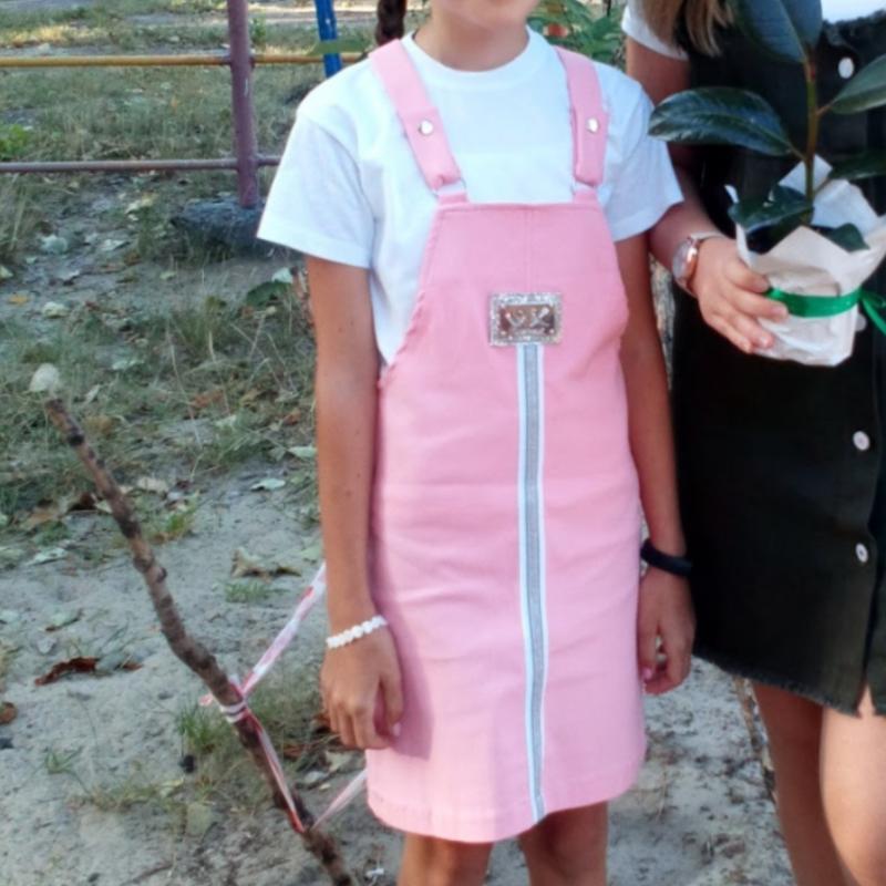 Сарафан на девочку розового цвета. Ткань стрейч-коттон, бретели регулируются на 2 положения.