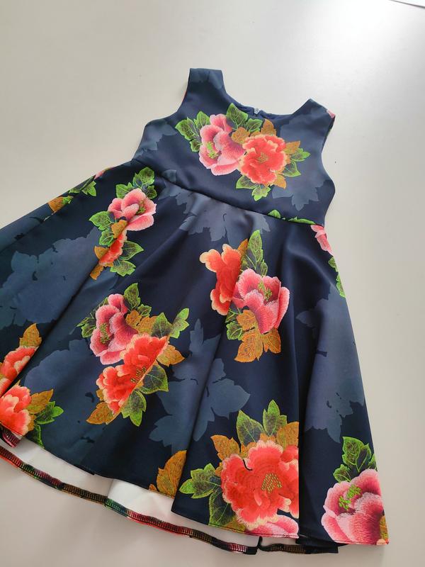 Рост 122-128, ткань креп-костюмка, по спинке молния, верх на хлопковой подкладке по грудях 31см по талии 30см длина по спине 60см