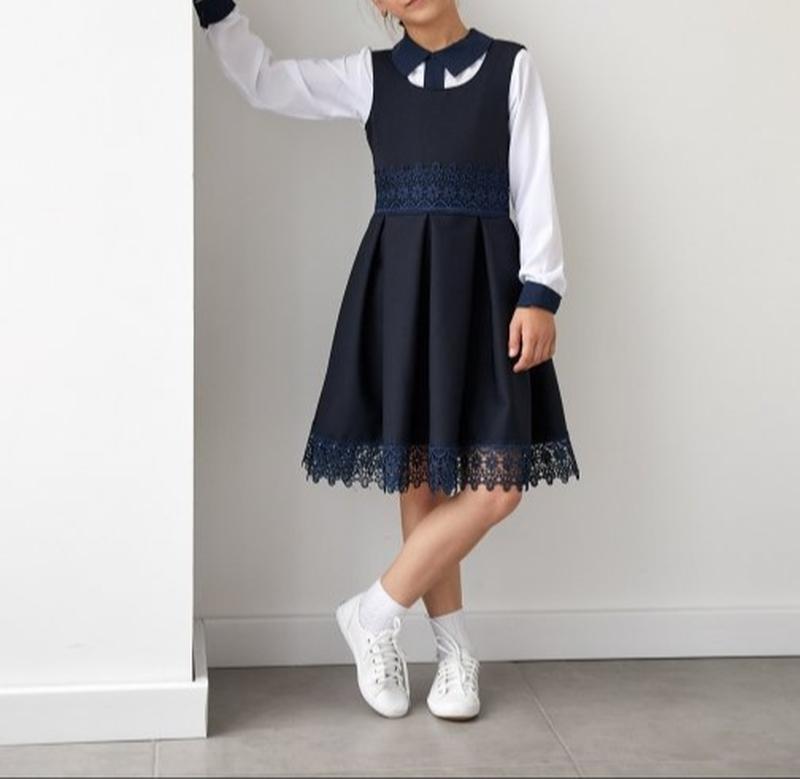 стильний шкільний сарафан на дівчинку темно-синього кольору з мереживом розмір 116 довжина 60 см ПОГ 29 см ПОТ 27 см оновлення товару кожен день 🛍️ рада бачити Вас у друзях на моїй сторіночці💖