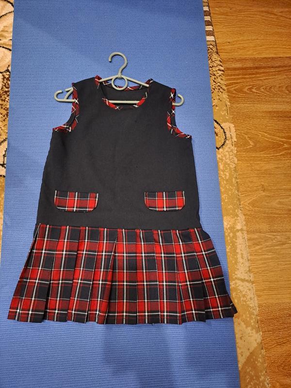 продам школьный сарафан для девочки, размер ориентировано 140-146, на ребенка погружной телостройки, замеры на фото