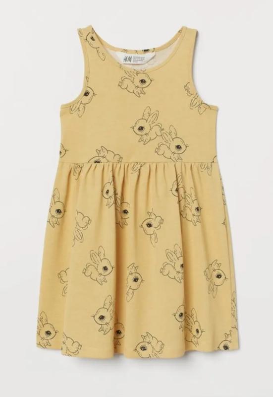 Детский жёлтый сарафан для девочки H&M Состояние: б/у, в идеальном состоянии Производитель: H&M Размер 140 цвет: жёлтый Принт: кролик Состав: 100% хлопок