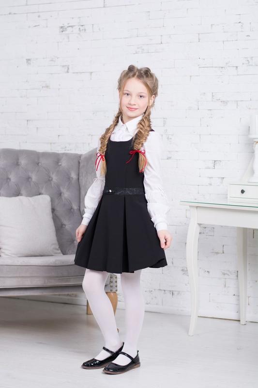 Сарафан отрезной по линии талии вставка из отделочной ткани, а также встречными складками по низу, на верхней части сарафана фигурные рельефы, по центру спинки застежка – молния. Сарафан отделан на подкладке, что позволяет ребенку его быстрее снимать и одевать. Цвет: черный Состав: 55% шерсть, 40% вискоза, 5% лайкра. Размеры: 140 Замеры – длина – 75 см, пог – 34 см Доставка и оплата: - Оплата: на карту или наличными при получении. - Доставка: Новая почта, Укрпочта, Justin - Возможен наложенный платеж при предоплате 150 грн на карту.