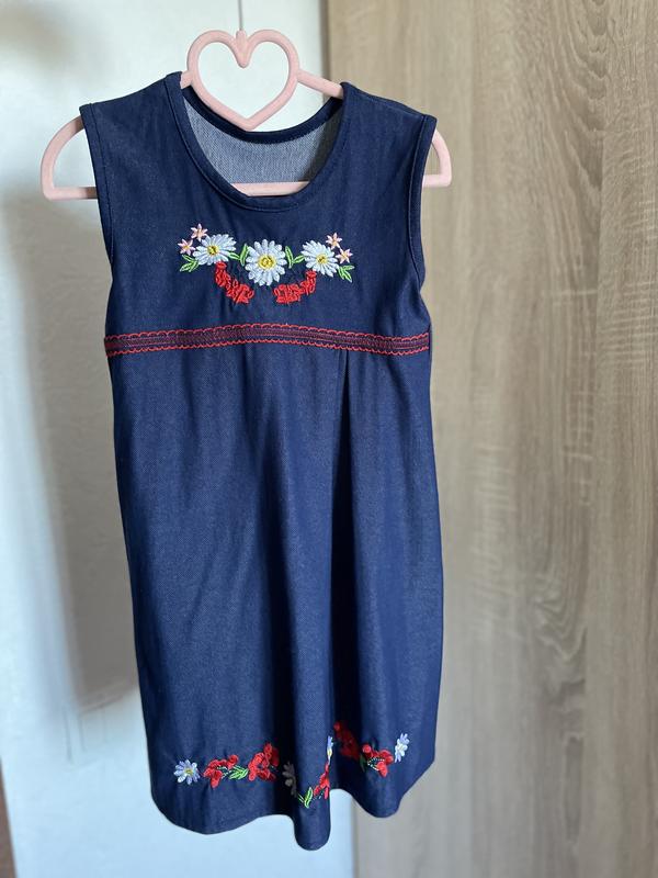 Сарафан з вишивкою. Стан ідеальний. Одягався у школу пару разів на свята. Тканина щільна. Довжина 64 см, під пахвами 32 см.