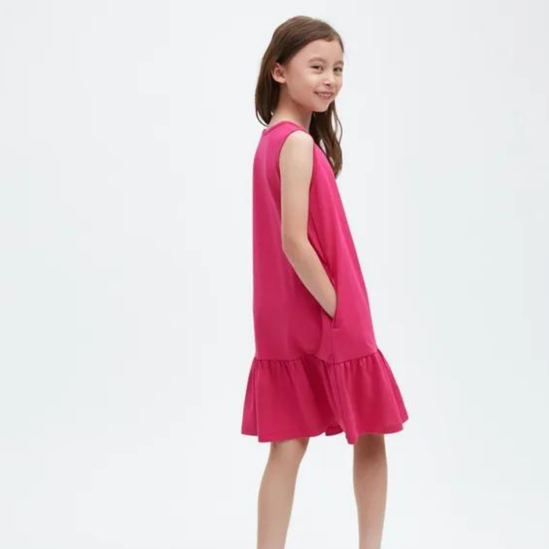 Состав: 65% хлопок, 35% полиэстер GIRLS AIRism Cotton Frill Sleevless Dres гладка тканина "AIRism" на вигляд бавовни карманы с двух сторон собранная горловина платье А-силуэта со сборками на подоле для строгающего, объемного стиля идеально подходит для повседневной носки
