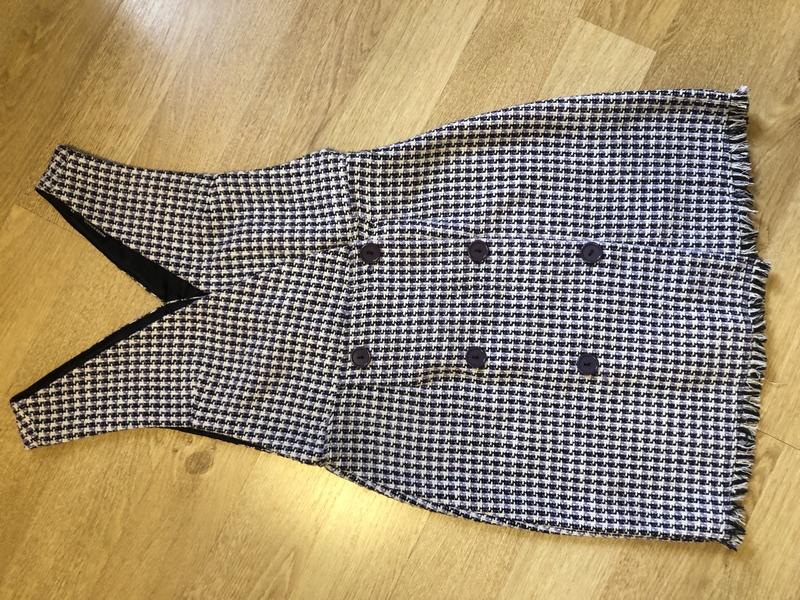 Сарафан теплый с подкладкой, на запах, на пуговицах. Красиво смотрится на теле, с гольфом. Длина 79 Ширина пояс полуоб 36. Состояние новой вещи