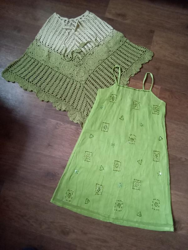 Новый комплект: сарафан сеточка паетки + пончо вязка.
