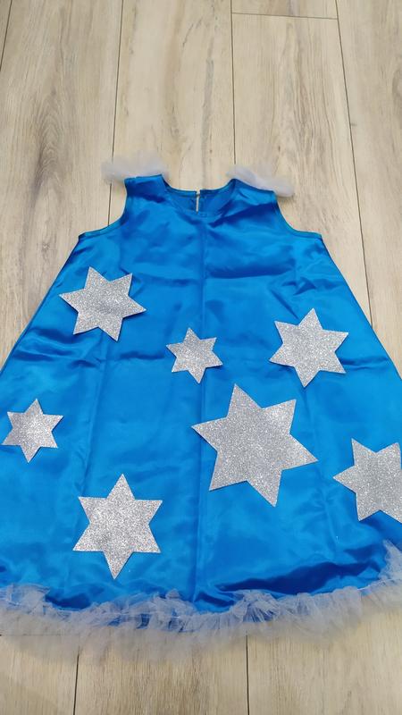 Новогодний костюм "Ночь". Стан нового. Одягалась 1 раз. Шилы по заказу. Звезды снимаются 7 шт. Есть обруч. Размер по замерам. Рост от 110 до 122.
