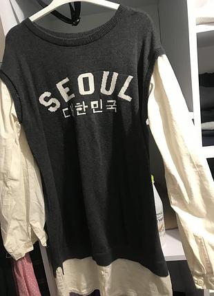 Платье-сведр LC Waikiki.рукава и низ коттн в виде блузки а основание мягкая типа трикотажа сведрового