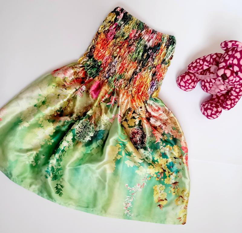 Красивый сарафан для девочки , тонкий, лёгкий из натурального шёлка, производство Вьетнама, грудь сжата, юбка расклешена , без шлеек. Размер 6-8 лет. Замеры на этот размер , грудь 20 и тянется до 35 , длина от груди 50 см.
