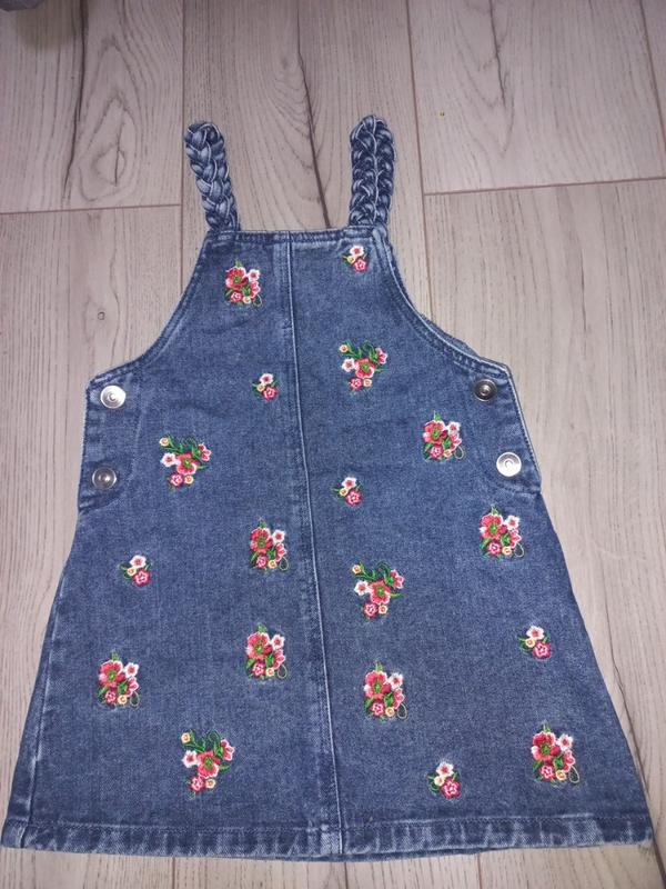 Сарафан з якісного плотного джинсу,вишитий квітами,по боках на кнопочках,розмір вказаний 2-3,але краще орієнтуйтесь на заміри.Довжиназ лямками 52 ,пог 29