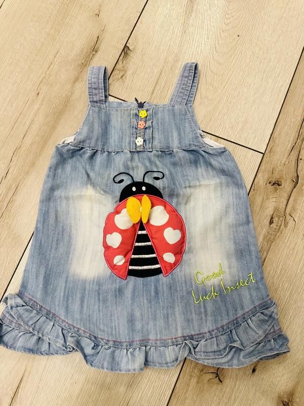 Очень удобный и легкий джинсовый сарафан для девочки 1-1,5 года. Сзади на молнии. Рисунок объемный. Продаю щоб не лежали як задарма