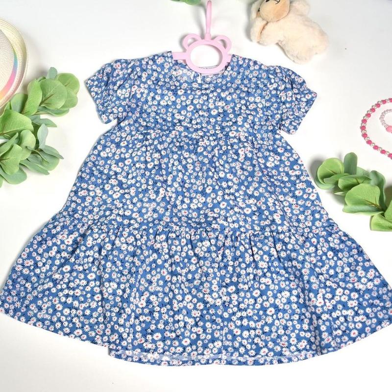 платье в ромашки синее Турция 98см (3-4роки) 95% хлопок 5% лайкра легкий, дизайн трапецией, рукавчик на резиночке