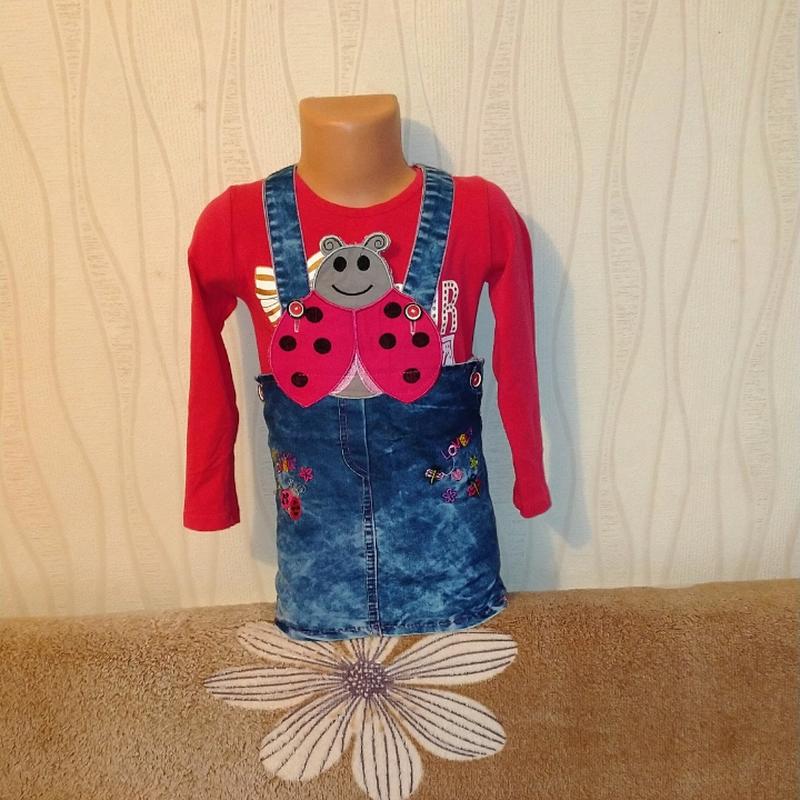 ціна вказана за комплект можно и по отдельности приобрести 📏сарафан длина с бретельками 50см пишет на 2 года (но мы носили 3/4) 70% бавовна 📏кофтинка на рост 104 95% бавовна длина 41 см длина рукава от шеи 40 см в груди полуобхват 30см