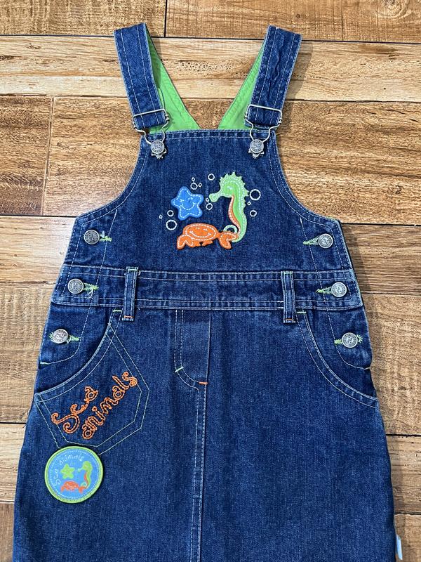 Отличный джинсовый сарафанчик для девочки, синего цвета, размер 98, все в хорошем состоянии.