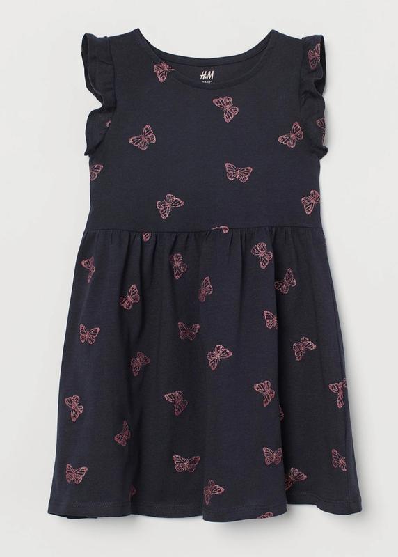 Летний сарафан от фирмы H&M. Европейское качество*****Сукня из мягкого трикотажа органического хлопка 100%, эластичный шов на талии с декоративными сборками. Цвет темно синий с принтом бабочек, без застежки и карманов. Швеция. Последние размеры 98/104 см.