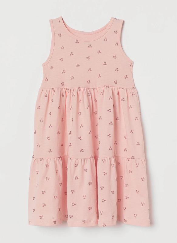 Великолепное летнее платье от фирмы H&M 😍 Европейское качество 💫💫💫💫💫 Нежно расклешенное платье без рукавов из хлопкового трикотажа с присборенными ярусами, без подкладки, без карманов, без застежки, нежно розового цвета с принтом 🍒 Швеция. Последние размеры - 98- 104 см.; 110-116 см.