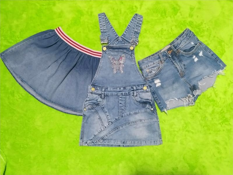 Стильный джинсовый набор на 8-10 лет (можно старше) сарафан, юбка, шорты, состояние отличное 400грн