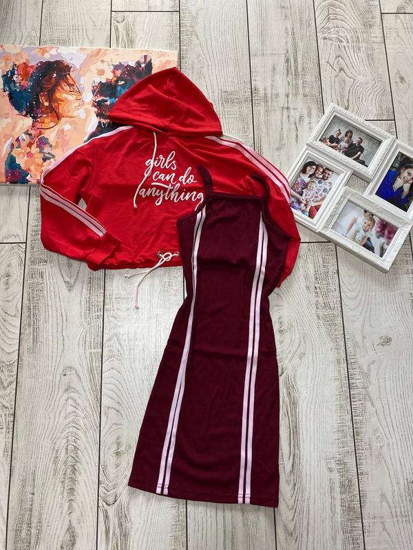 Костюм для девочки сарафан и укороченный худи. сарафан ткань мустанг, хорошо тянется, приятная и натуральная ткань худи ткань двунитка (корея) по низу завязка, что помогает регулировать длину и ширину Сарафан довж/пог Худи долж/пог/рукав от шеи 128р/70/30//35/42/56 134р/81/31//36/44/55 140р/90/33//38/45/58 152р/100/38//44/52/67 похибка +-2см