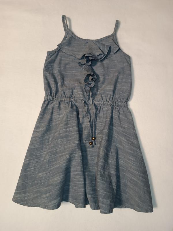 Сарафан для дівчинки на 5 років від фірми Next в ідеальному стані. Плям, рваностей немає. Заміри: Довжина виробу з брителлю 61 см Полуоб'єм грудей 31 см Полуоб'єм таліі 27 см ( тягнеться до 35 см)