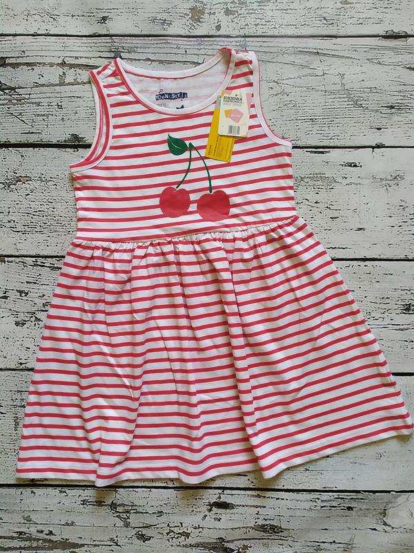 Яркий летний сарафан в полоску. Рост 98/104 (2-4 года) Young style, Польша. Яркий рисунок накат вишенки 💯 високоякісна бавовна. Отличное европейское качество. Непременно понравится Вашей принцессе) Замеры на фото