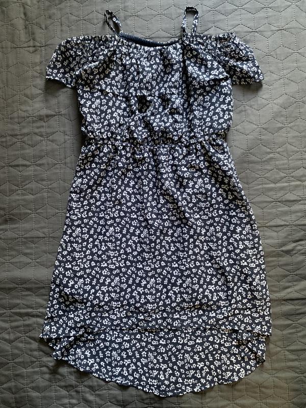 Носили сезон, після однієї дитини. Заміри: ПОГ 35 см, ПОТ 30.5 см, довжина 66 см, довжина від талії до которшого краю 38 см, довжина від талії до довшого краю 54 см, довжина підкладки (юбки) 33 см. Склад: 100% поліестер.