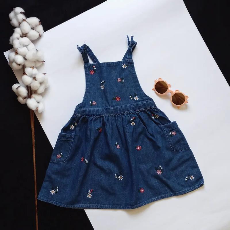 Сарафан джинсовый с вышитыми цветками ✔️ George ✔️ 3-4р ✔️ Нового ✔️ длин-54 нерегулируется, пояс-28 резинка