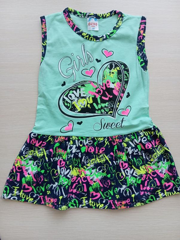 Красивый яркий сарафанчик. Очень легкий и приятный к телу! производство Турция Очень маломерят, примерно на 2-3 размера. Поэтому пишу рост не тот, что по биркам, а по факту! Смотрите замеры р. 2 (около 80-86) длина 39 см, ширина 22 см р. 3 (около 86-92) длина 41 см, ширина 24 см р. 4 (около 92-98) длина 43 см, ширина 26 см - есть 2 штуки. Размеры стоят на них разные, но по замерам они одинаковы