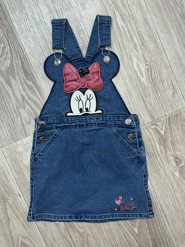 Джинсовый сарафан Минни Маус Состояние идеальное 🏷️Primark 3-4 года/104 Длина 54+-(28 юбка). ПОТ 28